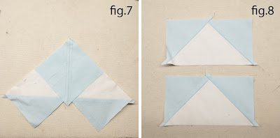 Press the half triangles outward and you will have two flying geese blocks. (fig.8)