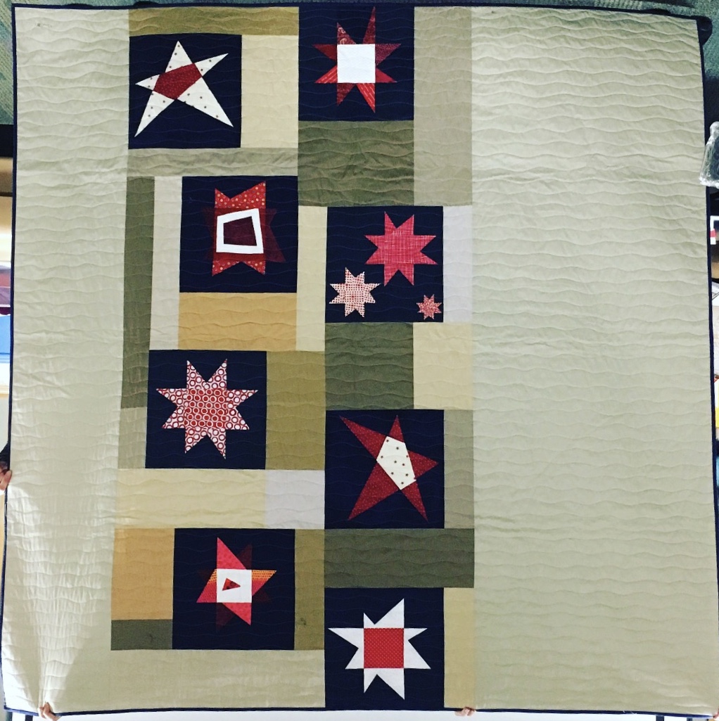 Members Sarah Shulman and Dianne Bienick are leading an effort to make quilts for Local Veterans through the Road Home Program. Two quilts were shared at the meeting and they are BEAUTIFUL. The blue star quilt was pieced by “many hands” at a sew-in, quilted by member Sarah Evans, and the binding will be done by vice president Heather Kinion. The taupe star quilt was pieced by Dianne, quilted by member Tricial Royal, and bound by treasurer Dani Miller. Great job, ladies! It was a team effort that made this possible. We still have one more quilt planned and we will slowly work towards getting it pieced. There are still plenty of ways to get involved so please contact Sarah or Dianne if you are interested.
