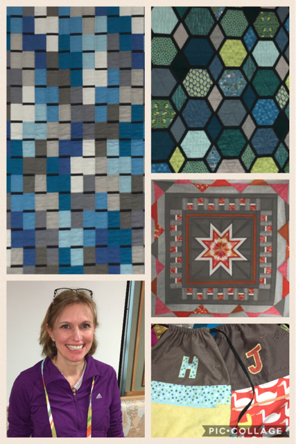 My mom taught me to sew when I was about 10 and I made my first quilt in college. That first try was a disaster! The quilt was a small size and featured a giant lizard in the middle with 3D scales. My Fiber Arts Professor loved it, but to me it was a total fail. I gifted it to some friends who liked it. They later had a son who loved the “lizard quilt” until it was threadbare! It would be years until I tried quilting again. I gave it another go in about 2009. Shortly after that I joined the Chicago Modern Quilt Guild and have been steadily making a few quilts each year.