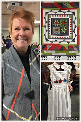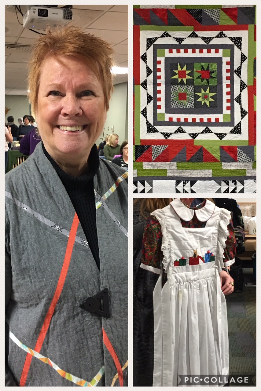 This month was our “Member’s Mini Trunk Show.” Participating members include: Julia Bryant, Sara Hochhauser, Iris Johnson, Heather Kinion, and Peta Minerof-Bartos. Each member is extremely talented and was very gracious in sharing their sewing and quilting journey with us. We are so very pleased to have such talent in our guild.