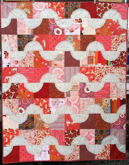 Detail of Sarah Shulman’s “Disappearing Drunkards Path” quilt. |