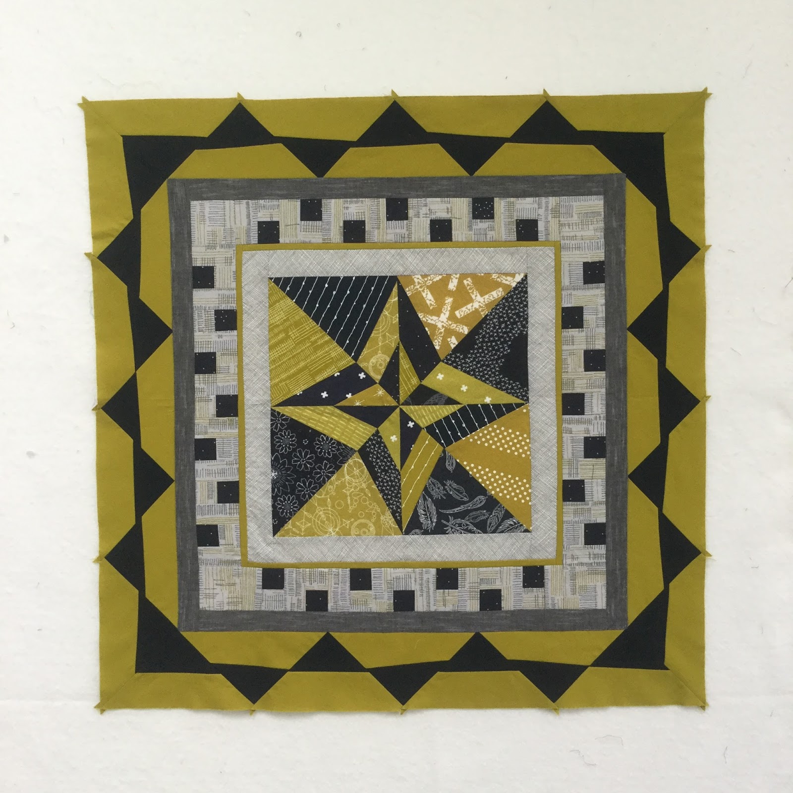This month’s border includes both a solid strip to increase the block size and an improv triangle border.