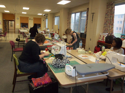 A glimpse of Jen, Mimi, Erika, and Elaine in our bright big retreat room