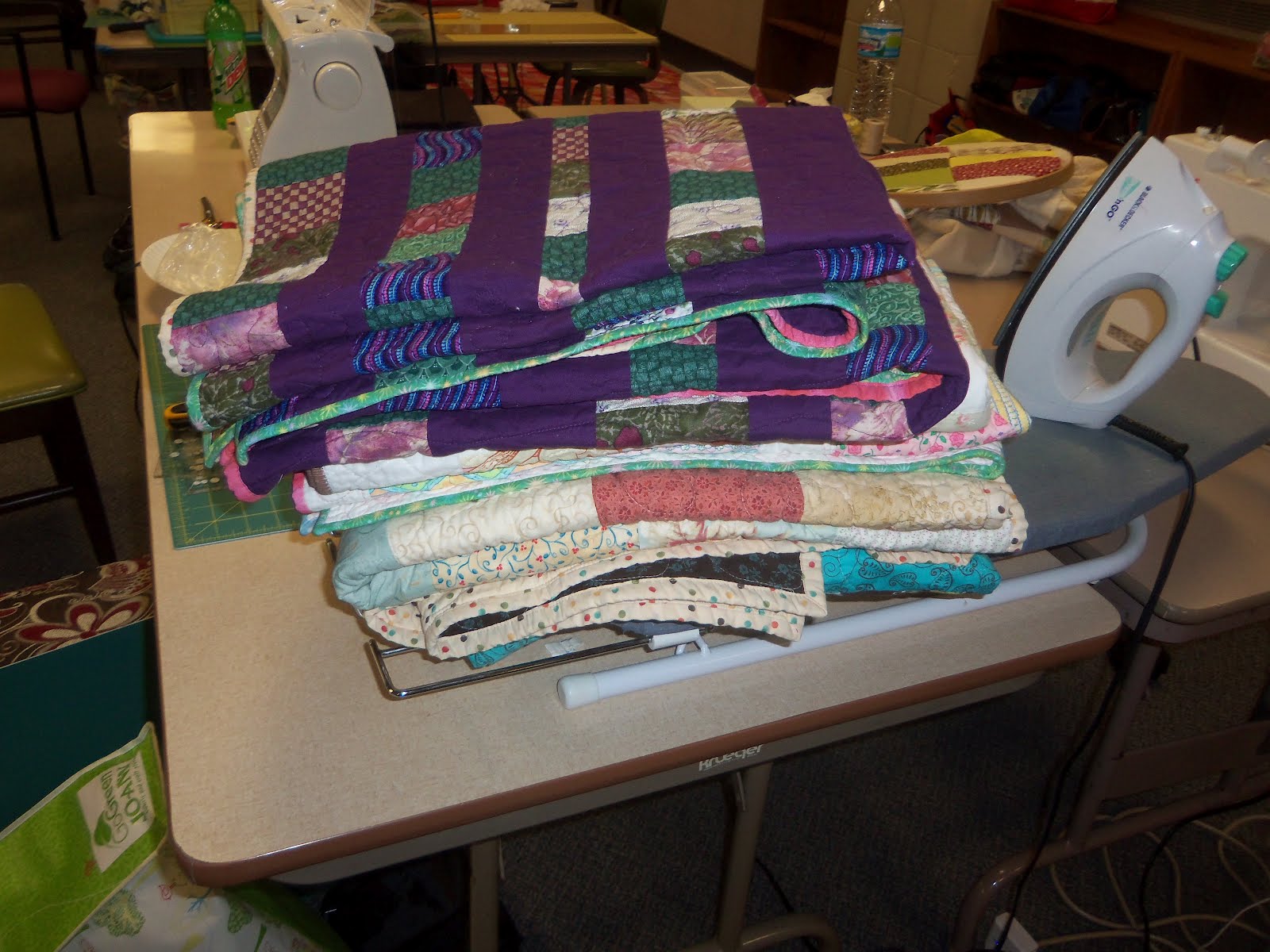 Charity quilts from the Fall 2011 retreat ready to be presented to Sister Dolores