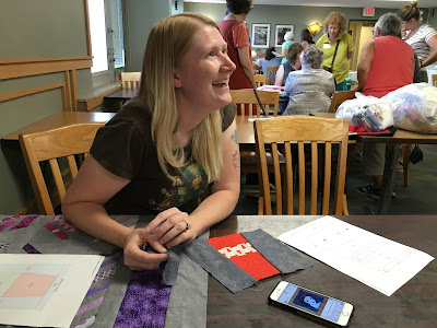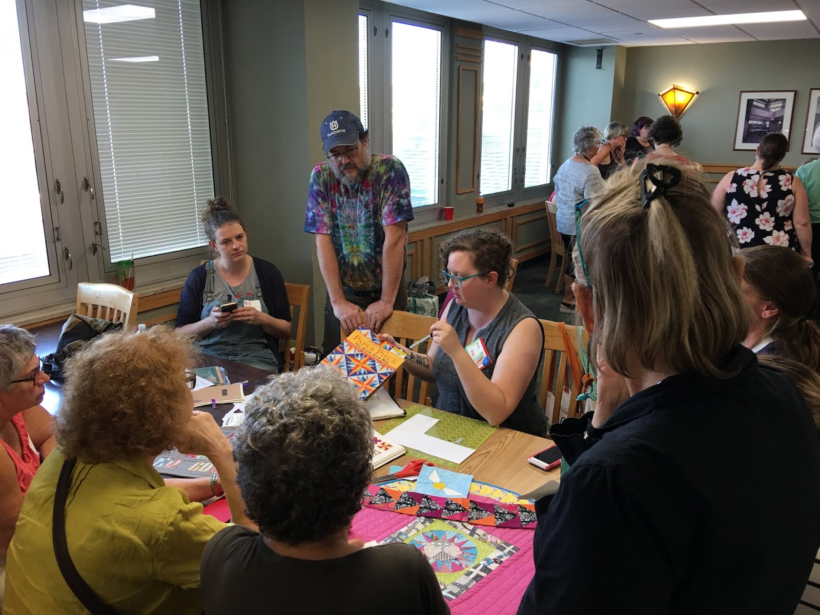 We finished turning in our charity quilt blocks to Heidi Parkes, and the stories our members told about each block were powerful and moving. We can’t wait to see it all come together. If you’re attending retreat in October, you’ll have a chance to do some hand quilting on it. Then it will travel to our November meeting for more member hand quilting.