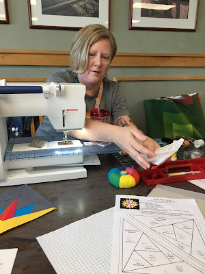 September’s meeting was all about foundation paper piecing (FPP). Emily Lang organized a series of presentations from herself and members Erika Mulvenna, Katie Cooper, and Sara Hochhauser.