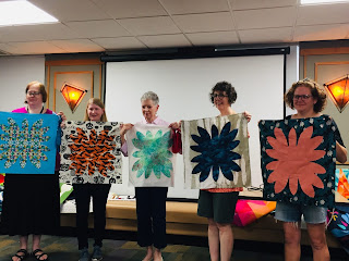 We welcomed Sheri Cifaldi-Morrill of Whole Circle Studios. We were inspired by Sheri’s process and her quilts (she brought a lot of them). There are many posts on social media posted by CMQG, Sheri and our members go look if you were unable to join us. Members who attended her Hawaiian Applique workshop the previous day brought their creations, they are going to be stunning! Many of our workshops like this one are taught by quilters who teach around the US and QuiltCon, we are so lucky to have a few of them travel to us here in the Chicago area.