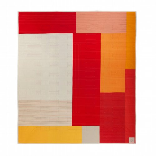 Season Evans is a self-taught quilter who is known for her striking minimalist compositions, often inspired by traditional quilt patterns. She has taught at QuiltCon and exhibited quilts all over the country and internationally. She explores pattern, geometry, and contrast in her work, and her quilts tell stories about the places she lives and contemporary life.